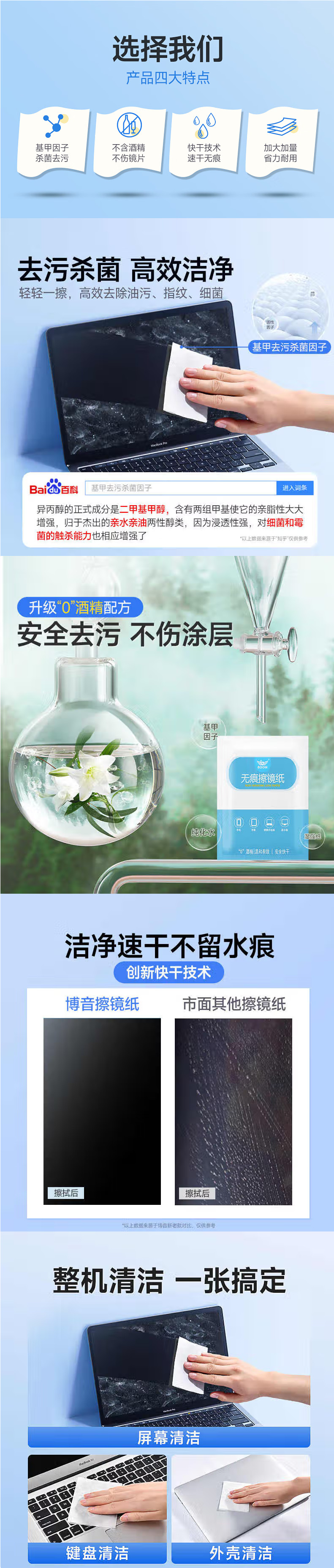 博音 异丙醇湿巾(适用于屏幕清洁)360片/盒