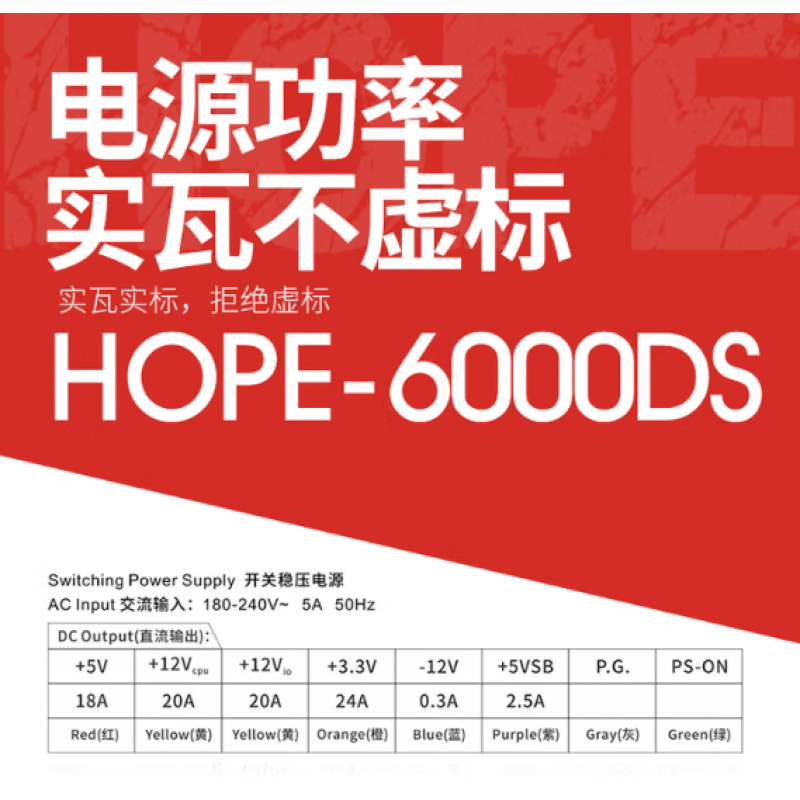 长城 额定500W HOPE-6000DS电脑电源