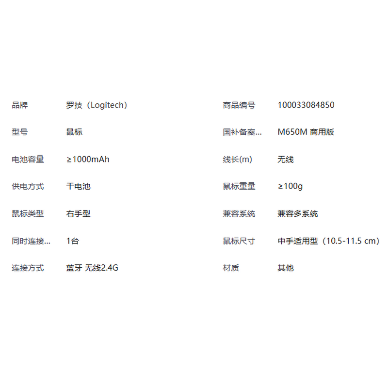 罗技(Logitech)M650 M无线蓝牙鼠标 中小手型 黑色 商用版