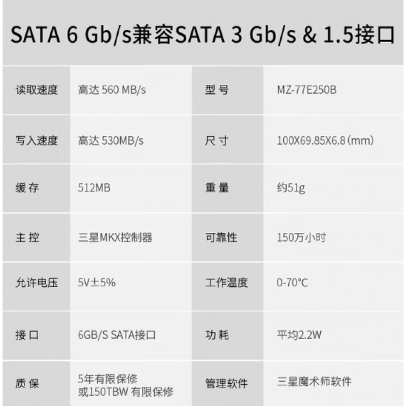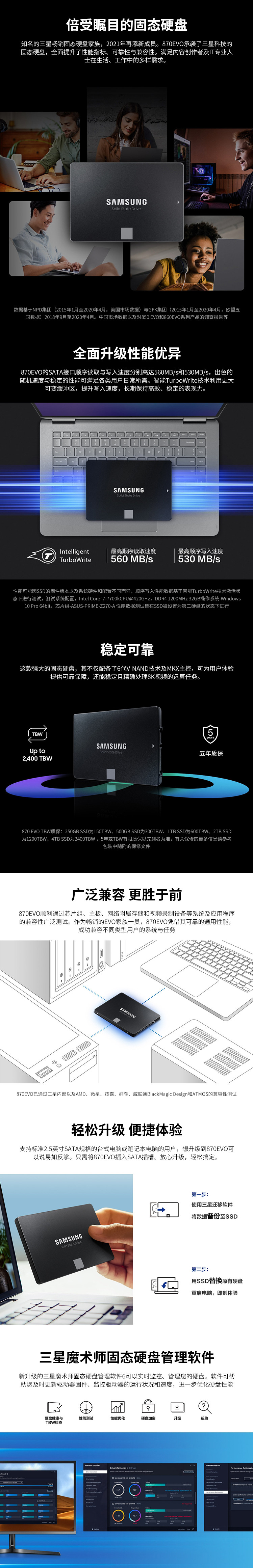 三星(SAMSUNG)250GB SSD固态硬盘 SATA3.0接口 870 EVO(MZ-77E250B)