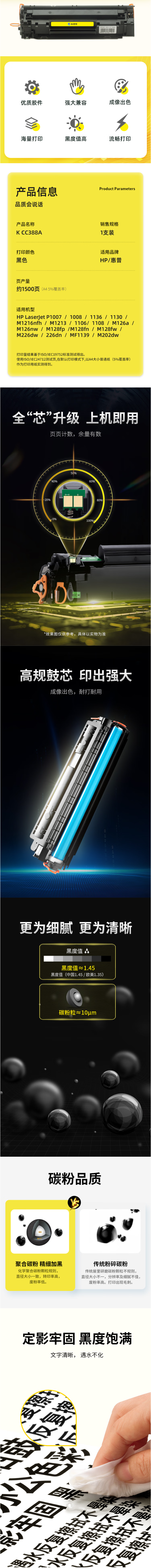 科思特 K CC388A 硒鼓 黑色(适用HP LaserJet P1007/1008/1136/1130/M1216nfh/M1213/1106)1500页 专业版