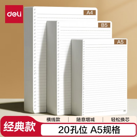得力 A5活页本替换芯 横线 20孔 60张/本