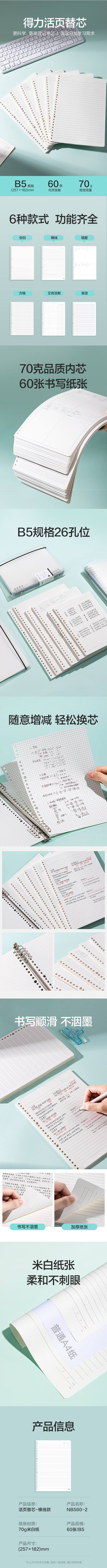 得力 B5活页本替换芯 横线 26孔 60张/本