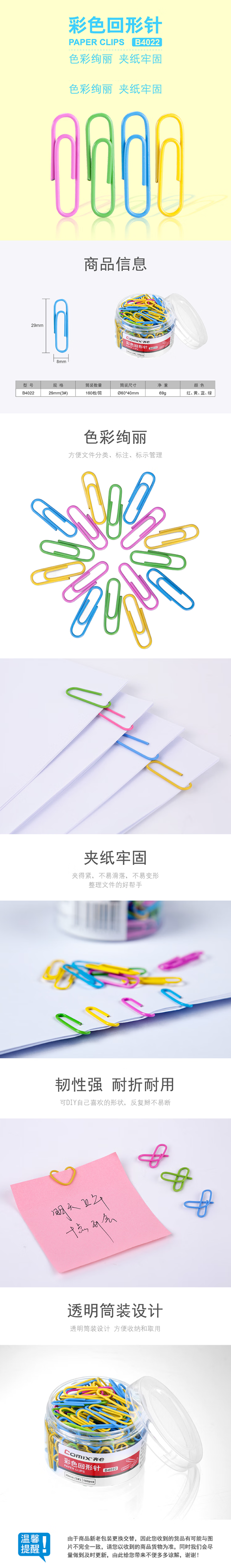 齐心(COMIX)彩色回形针3#29mm 160只/筒 B4022