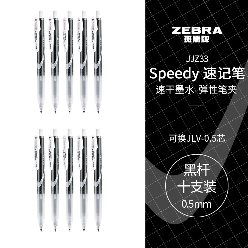 斑马牌中性墨水中性笔 0.5mm子弹头JJZ33 黑杆黑色10支装/盒