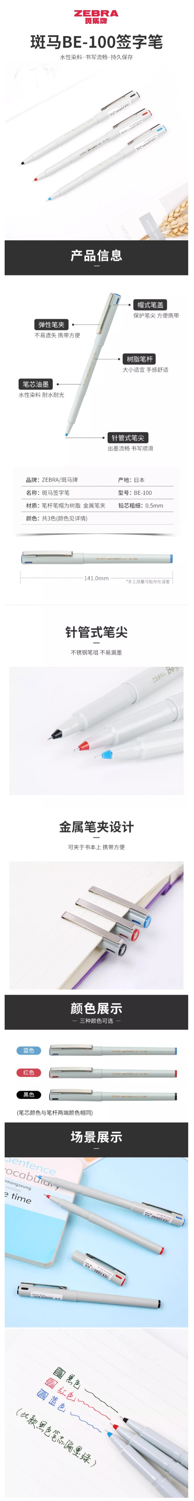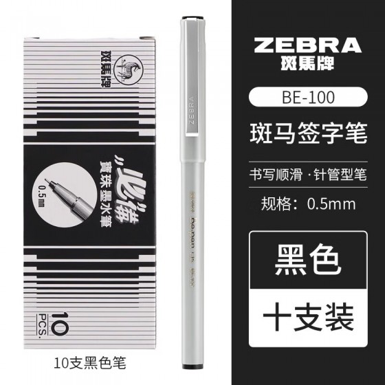 斑马牌 0.5mm直液式针管尖 BE-100速干中性笔黑色走珠笔 10支装/盒