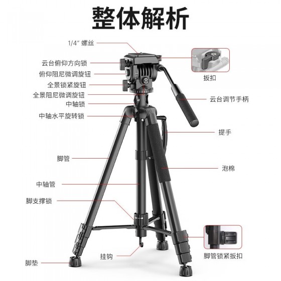 优篮子【Ulanzi】铝合金三脚架VT-02(赠冷靴手机夹)