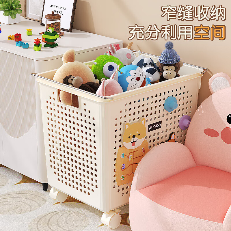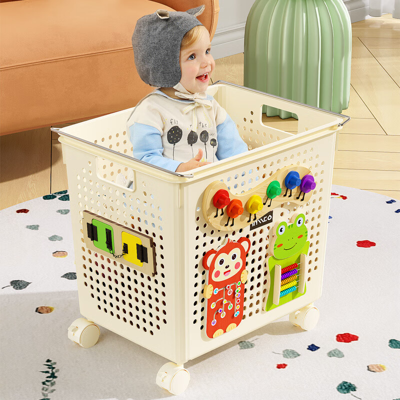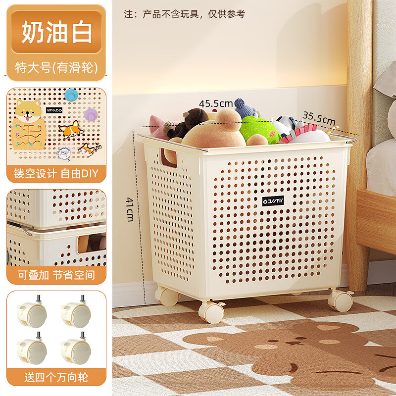 收纳框45.5*35.5*41cm 奶油白 特大号带滑轮
