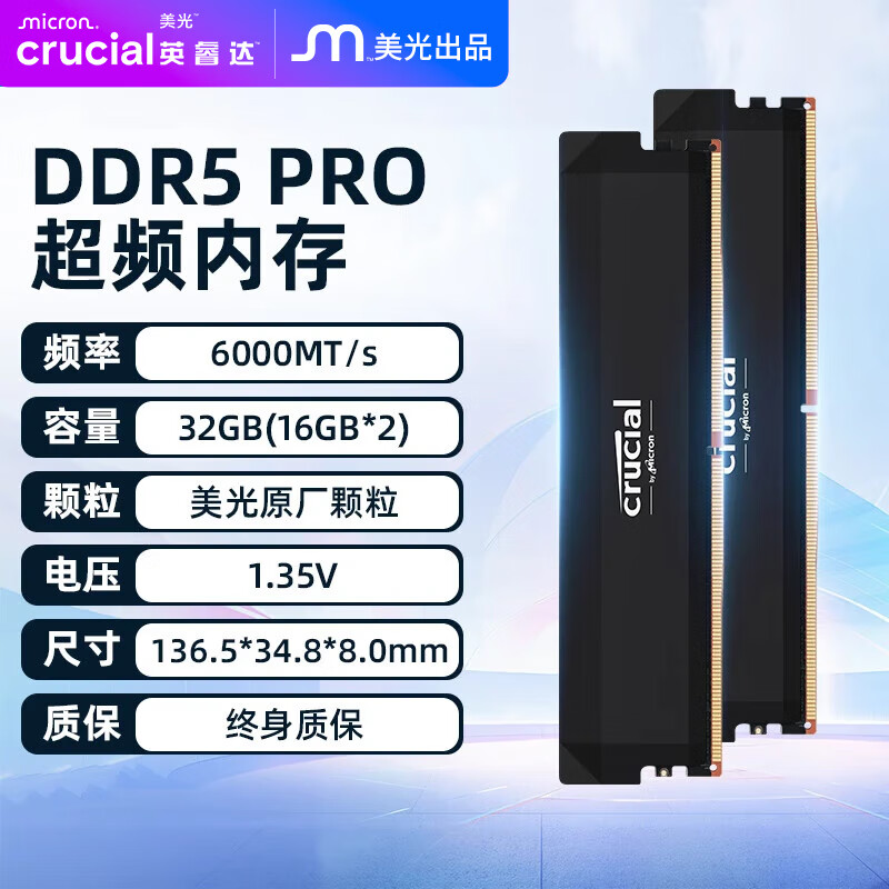 英睿达 美光32GB(16GB×2)DDR5 6000频率内存条