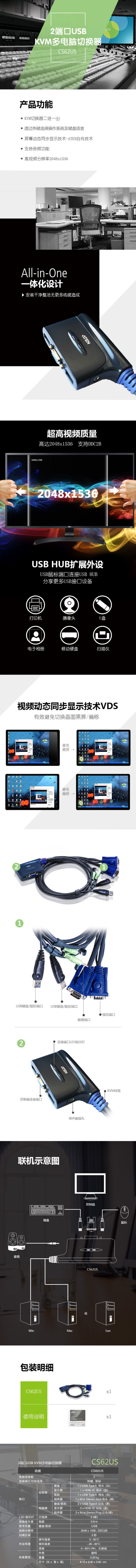 宏正 KVM切换器 VGA 二进一出 CS62US
