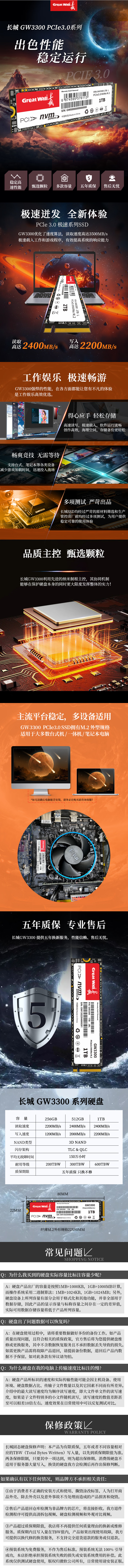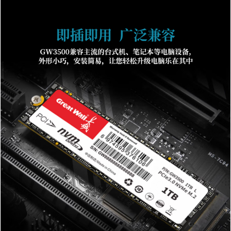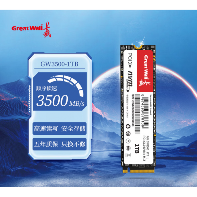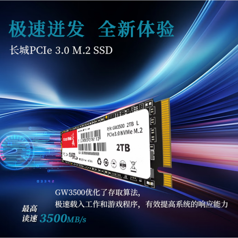 长城GW3300 GW3500 m2固态硬盘PCIe3.0台式机笔记本电脑高速SSD 256GB/512GB/1TB/2TB GW3500-1TB