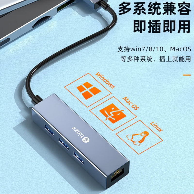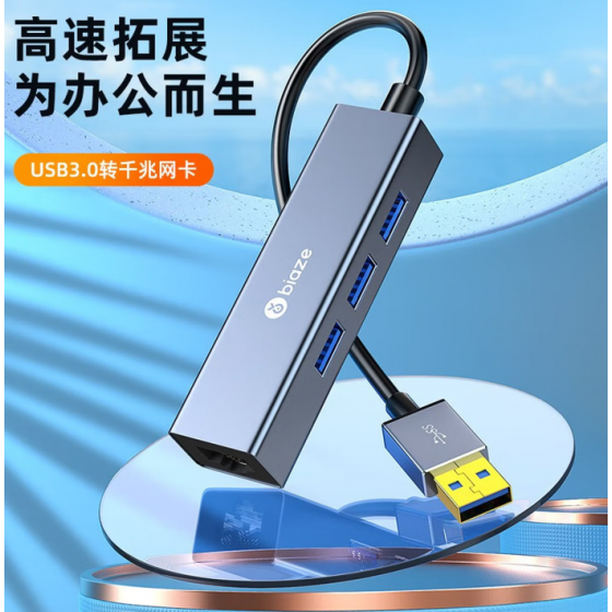 毕亚兹 USB3.0千兆有线网卡转RJ45网线接口转换器