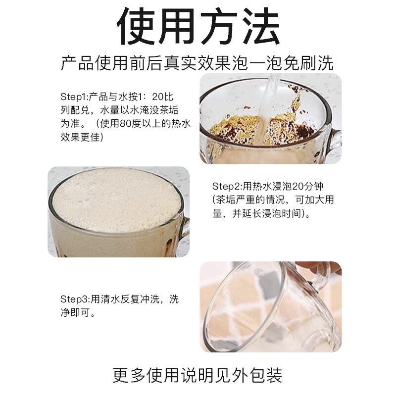亮佰净去渍食品级茶具水壶杯清洗除水茶污除垢剂 500g