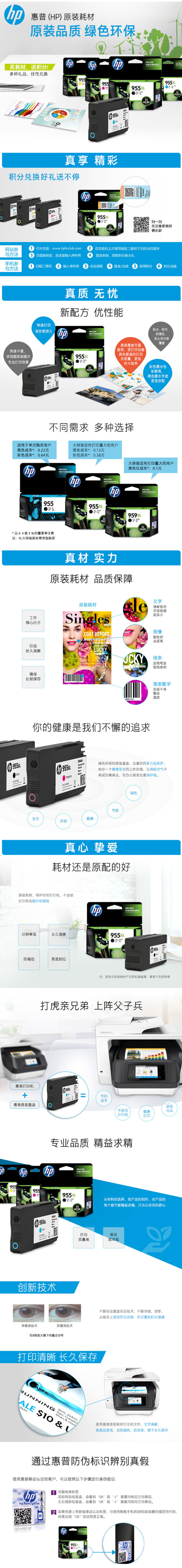 惠普(HP)955XL 四色大容量墨盒(适用于惠普OFFCEJET PRO7740/8210/8216/8710/8720/8730喷墨打印机)