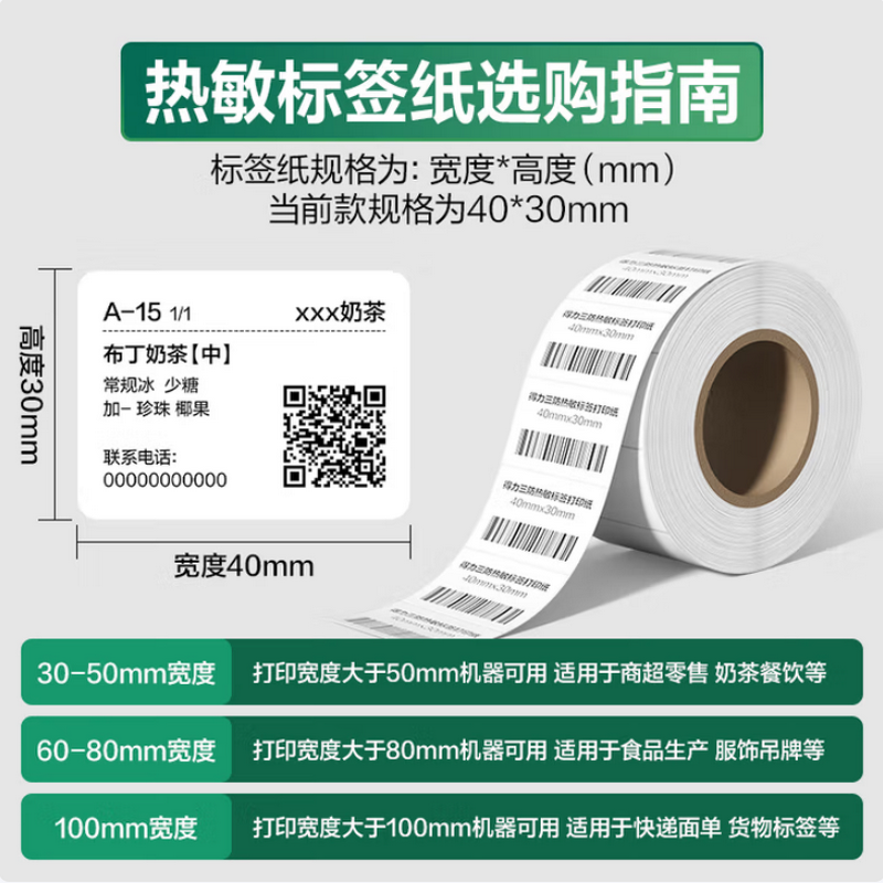 得力(deli)40*30mm 三防热敏标签纸 800张*4卷/包