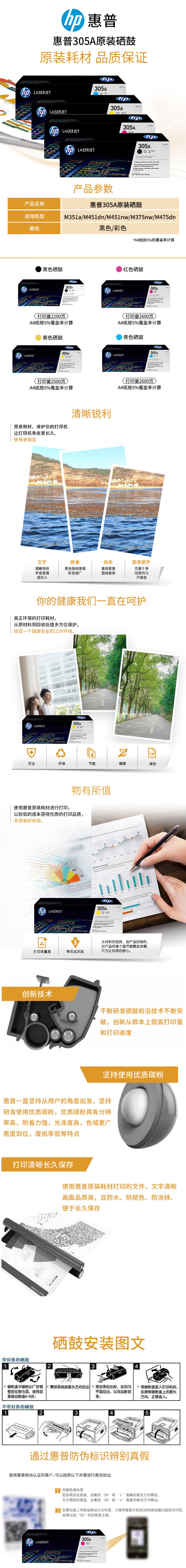 惠普(HP) CE410A 305a 硒鼓 适用M351a/M451dn/375NW/475,原装硒鼓 CE410A 黑色硒鼓 约2200页