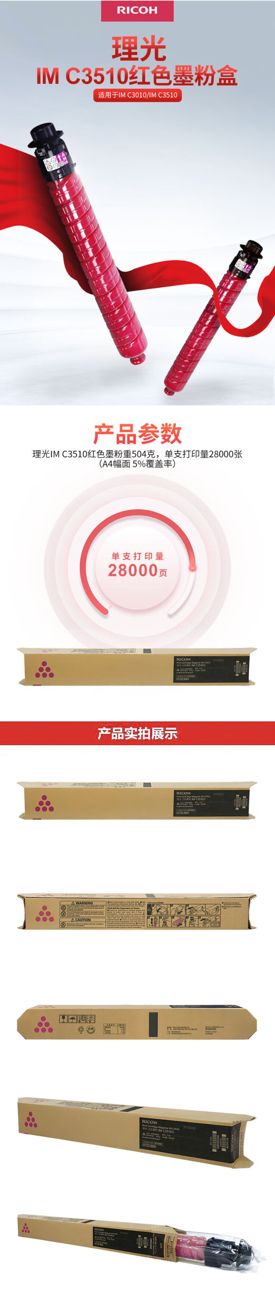 理光(Ricoh)IM C3510 红色墨粉盒 适用于IM C3010/IM C3510 打印量28000页,504克