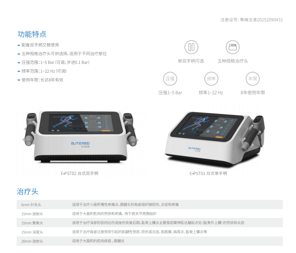 气压弹道式体外冲击波治疗仪E-PST01(台式单手柄)