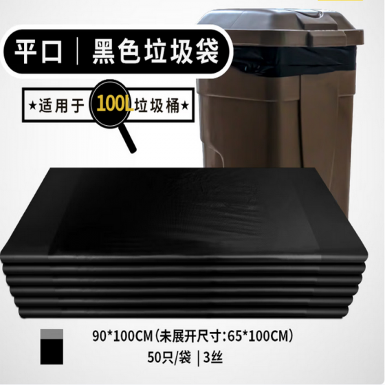 国产 平口垃圾袋 90*110-4丝特厚 50个/扎