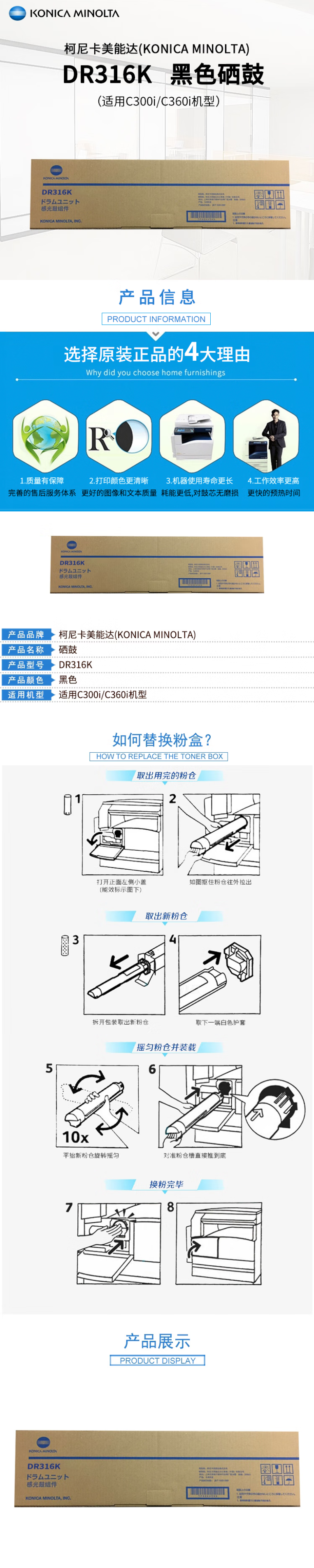 柯尼卡美能达(KONICA MINOLTA)原装DR316C青色感光鼓组件bizhub C250i/C300i/C360i/7130i复印机硒鼓