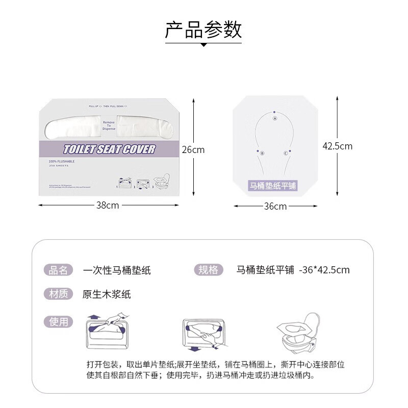妙美一次性马桶坐垫纸250抽/包