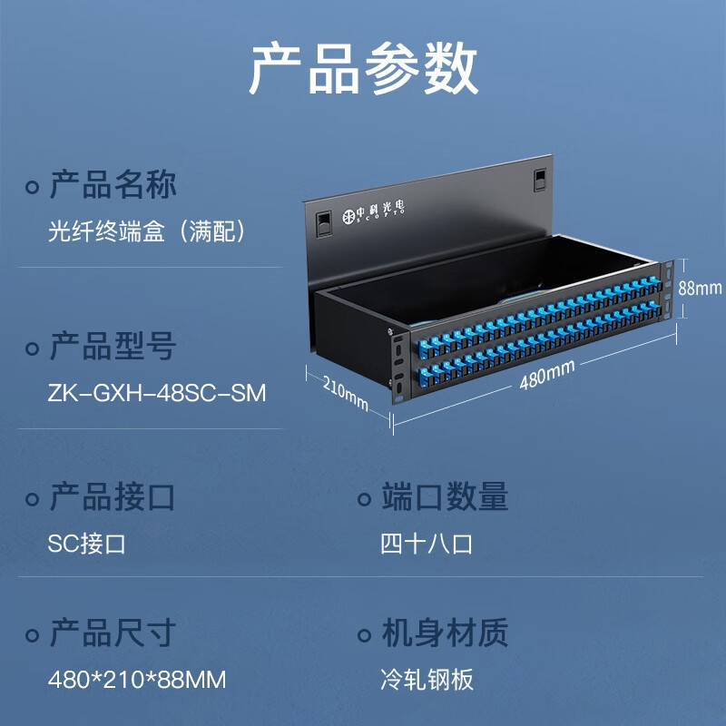 中科光电 光纤终端盒48口 48芯光纤配线架 ZK-GXH-48SC-SM
