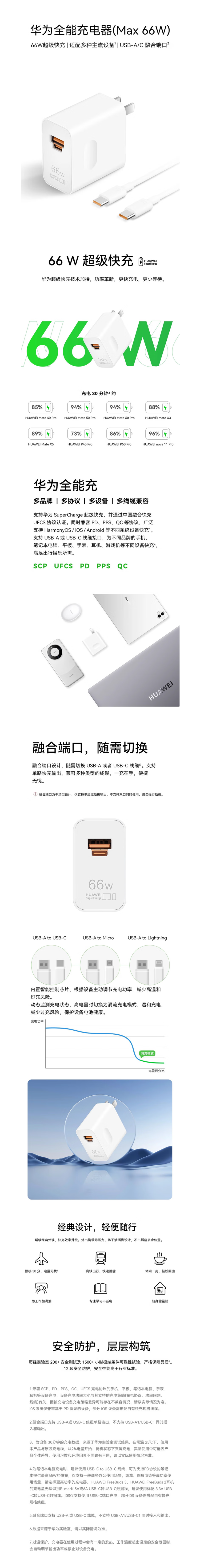 华为 (66W)超级快充充电头 含6A Type-C数据线