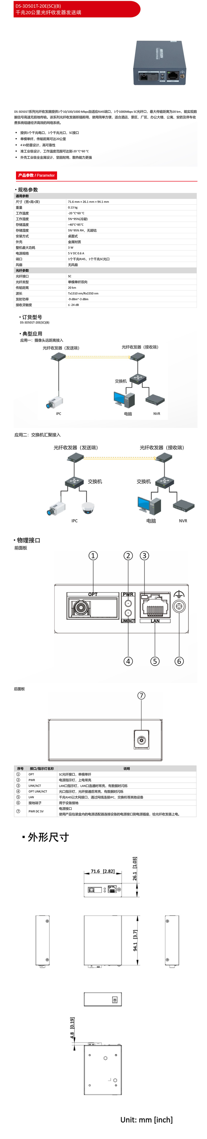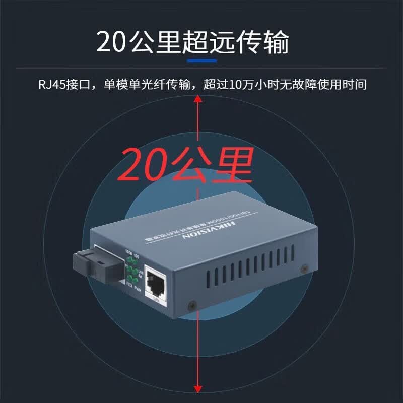 海康威视 千兆单模单纤光纤收发器发送端20Km(发射端) DS-3D501T-20E 2接口