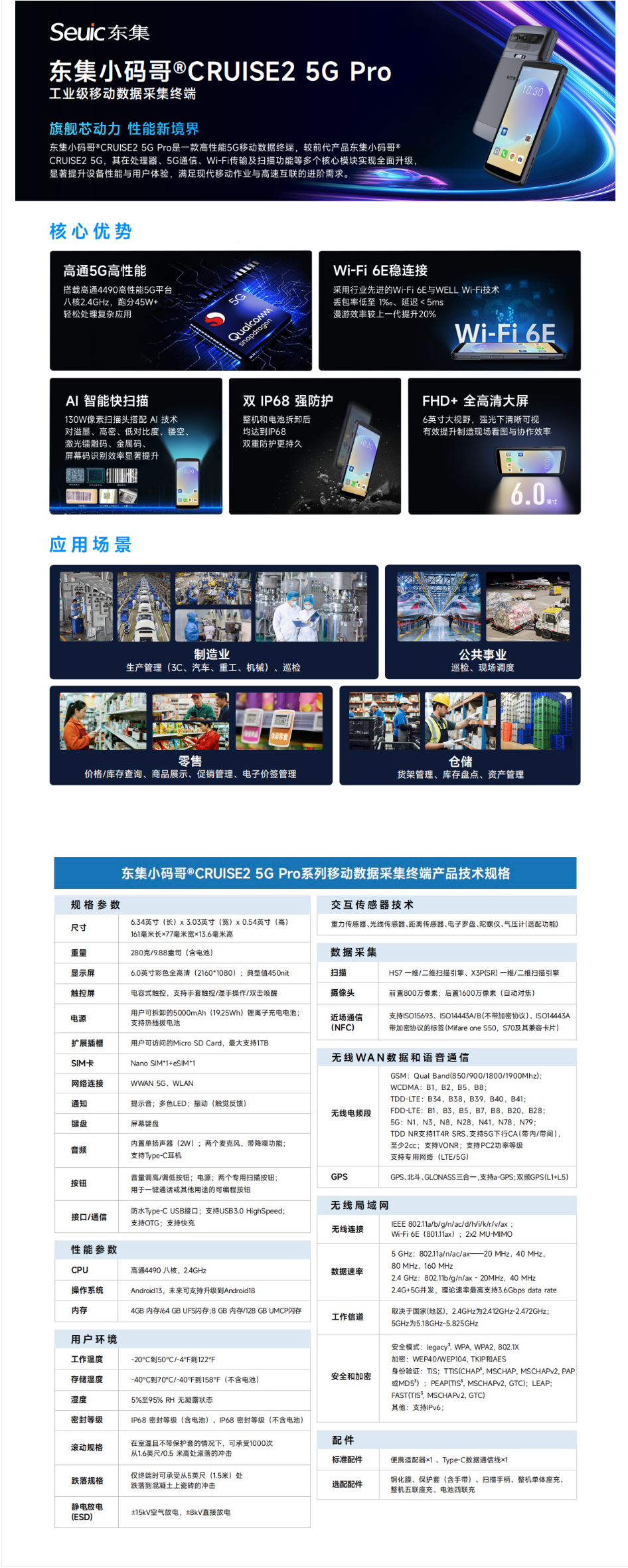 东集小码哥®CRUISE2 5G Pro工业级移动数据采集终端 8+128 PDA